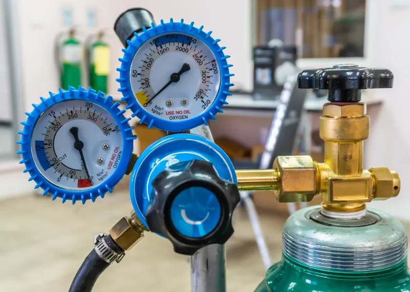 Las válvulas de oxigeno se utilizan para reducir la alta presión de los cilindros de gases comprimidos a una presión regulada. Construidas en latón forjado y trafilado.